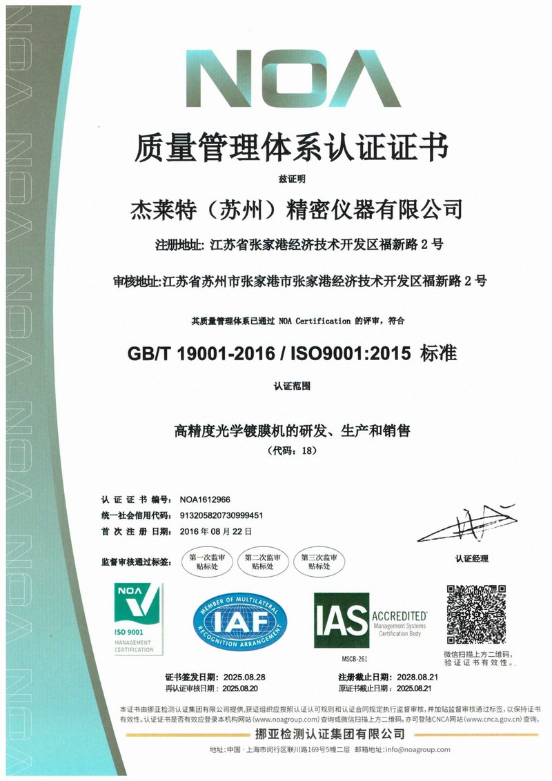 质量管理体系认证证书
