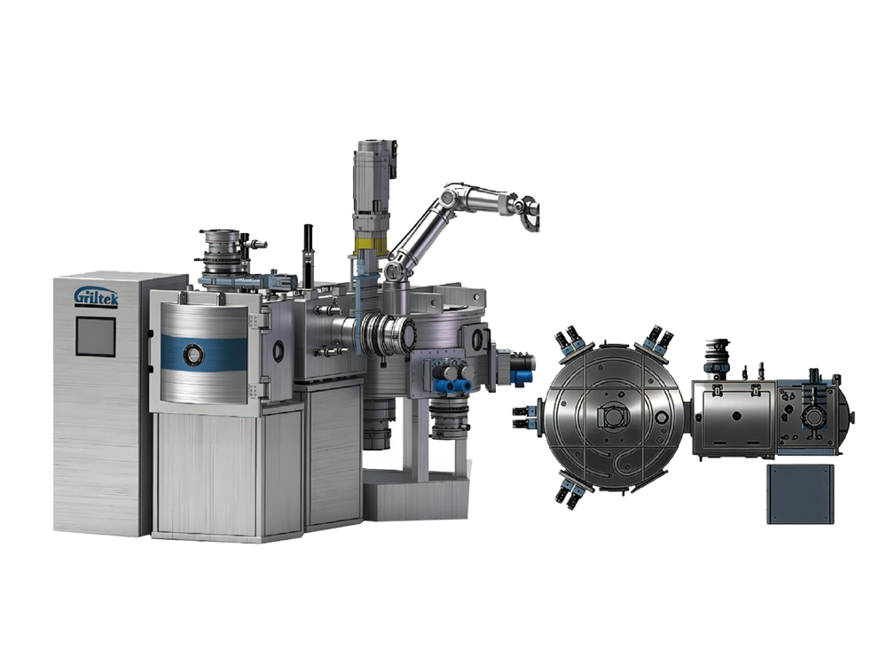 该设备用于精密光学器件的膜层研发和生产,配备了样品室、传输室、工艺室,搭载了光控膜厚系统,可实现精密的金 属、氧化物、介质膜等的制备。